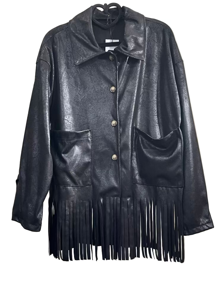 Questa giacca taglia unica in simil camoscio è un must-have per chi segue le ultime tendenze moda. Realizzata con materiali di alta qualità, offre una vestibilità versatile e confortevole. Le frange, elemento chiave del design, donano un aspetto dinamico e contemporaneo, ideale per valorizzare qualsiasi look con un tocco di stile attuale e sofisticato.