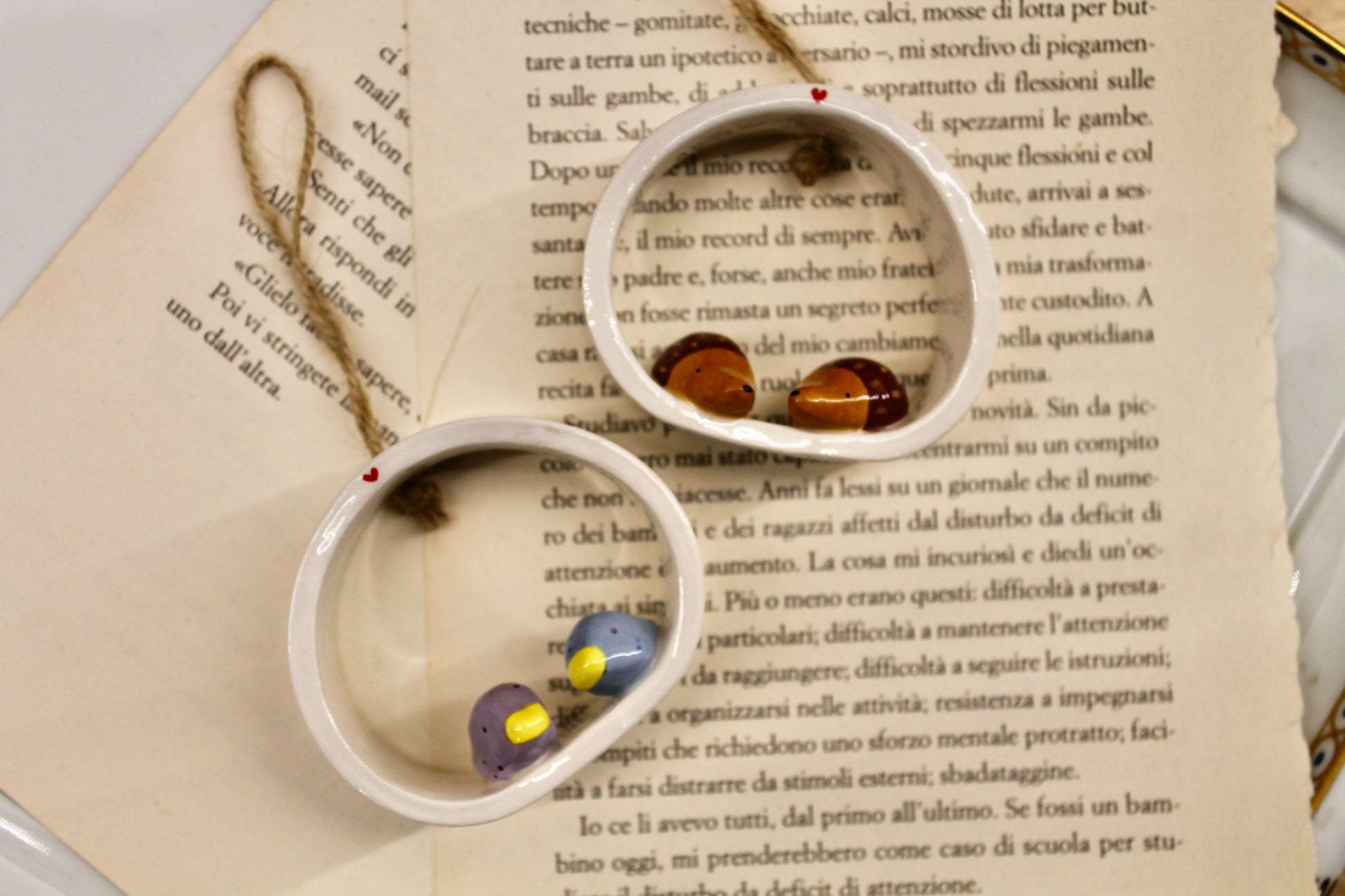Decorazioni in ceramica da appendere o da appoggiare, completamente realizzate. dipinte a mano.