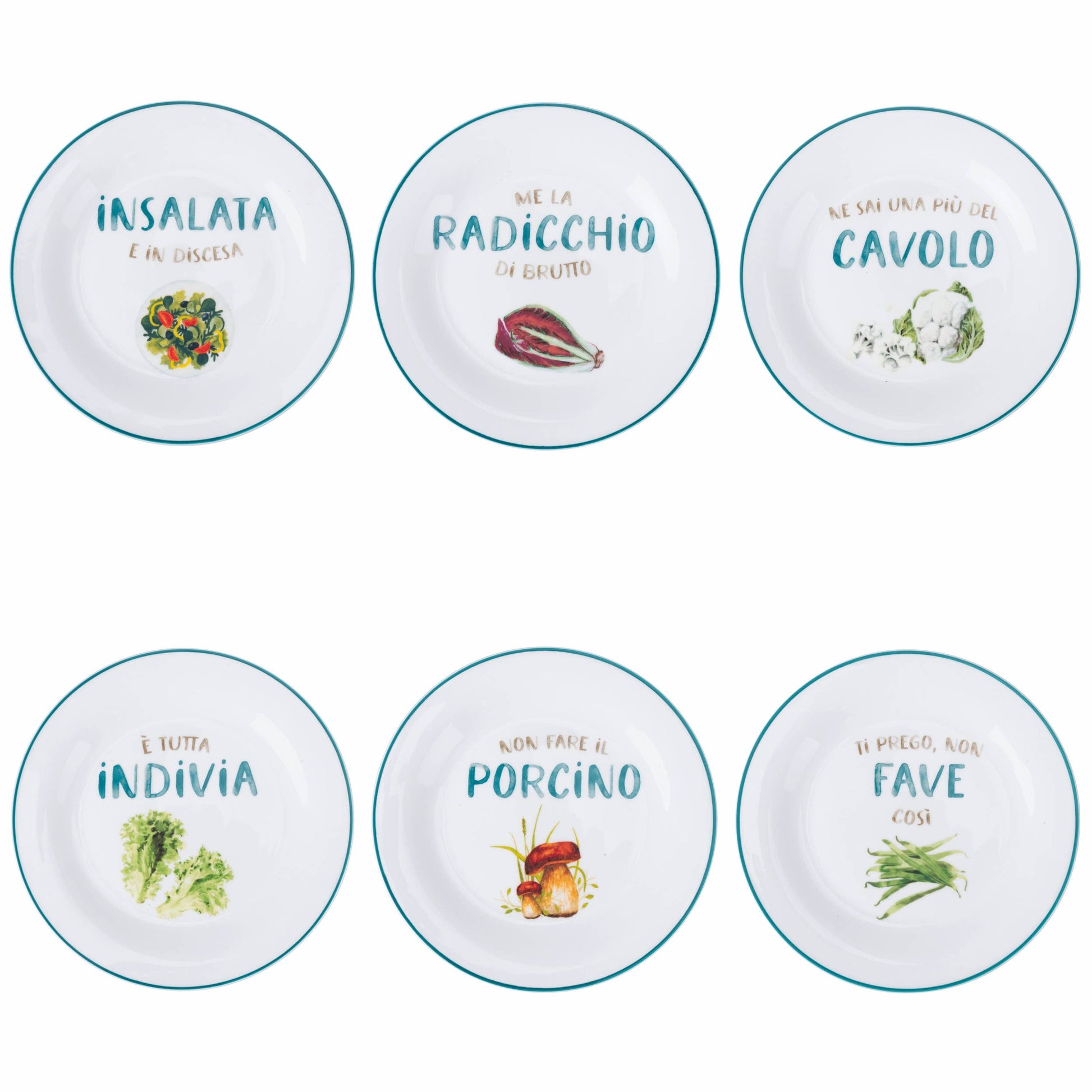 "Le Travisate" Piatto Contorno è un elegante set di piatti progettati per valorizzare la tua tavola. Caratterizzati da scritte ironiche, offrono non solo un aspetto originale, ma anche la possibilità di stimolare conversazioni interessanti durante i pasti. Ideali per occasioni formali e informali, aggiungono un tocco di personalità senza compromettere la funzionalità. Misure: Ø 19 x h. 1,5 cm Lavabile in lavastoviglie Utilizzabile in microonde