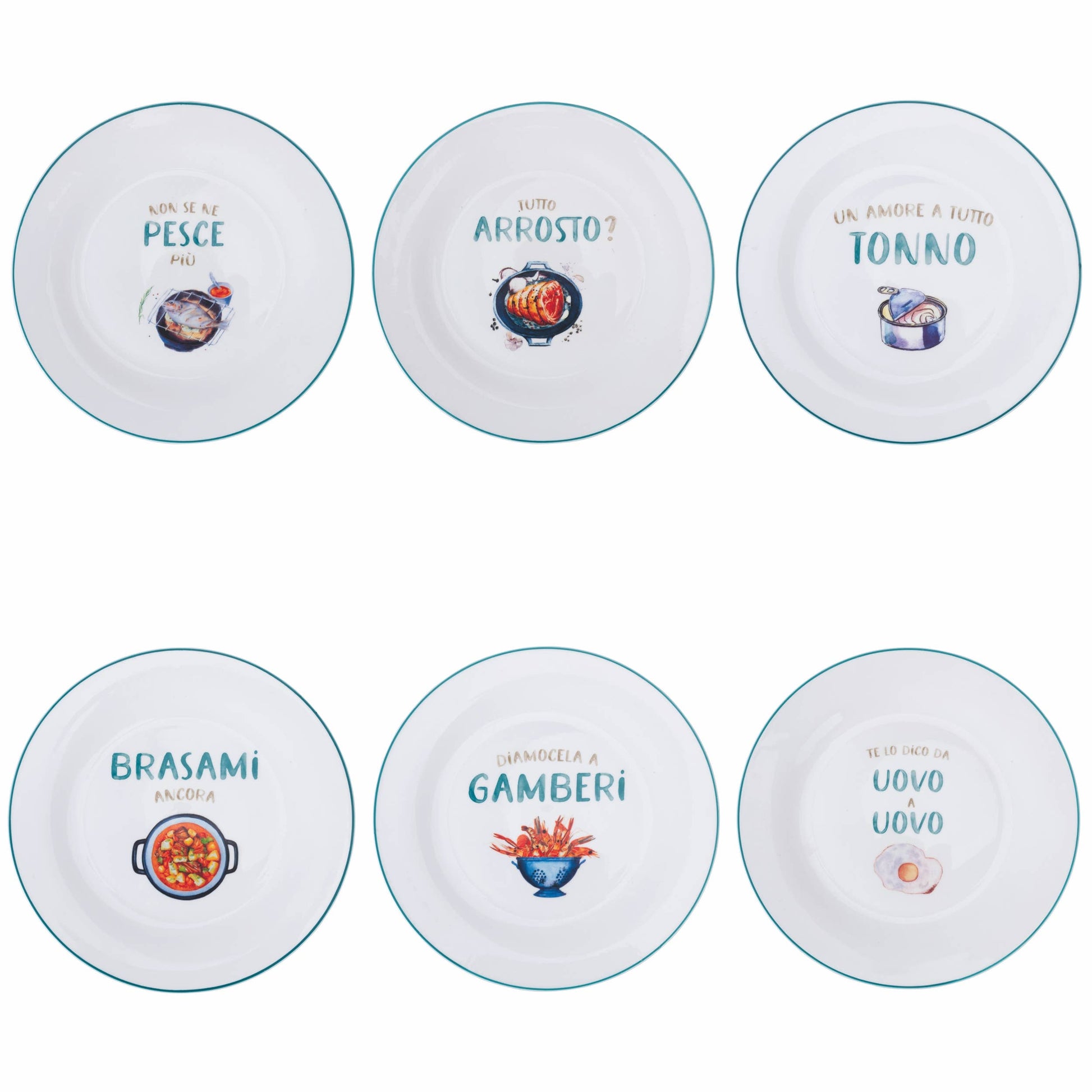 Disponibili in 6 assortimenti: Non se ne PESCE più; Tutto ARROSTO?; Un amore a tutto TONNO; BRASAMI ancora; Diamocela a GAMBERI; Te lo dico da UOVO a UOVO