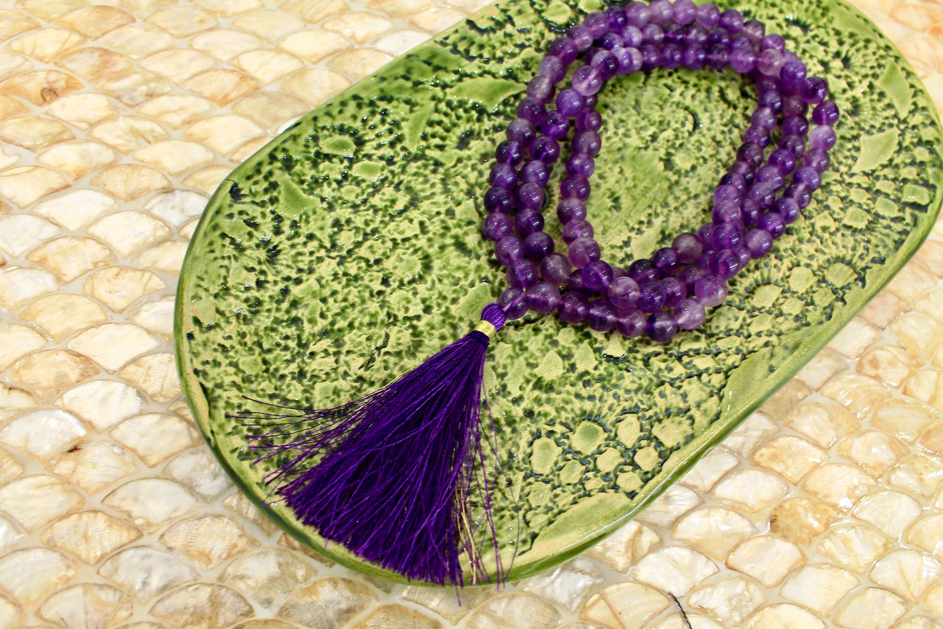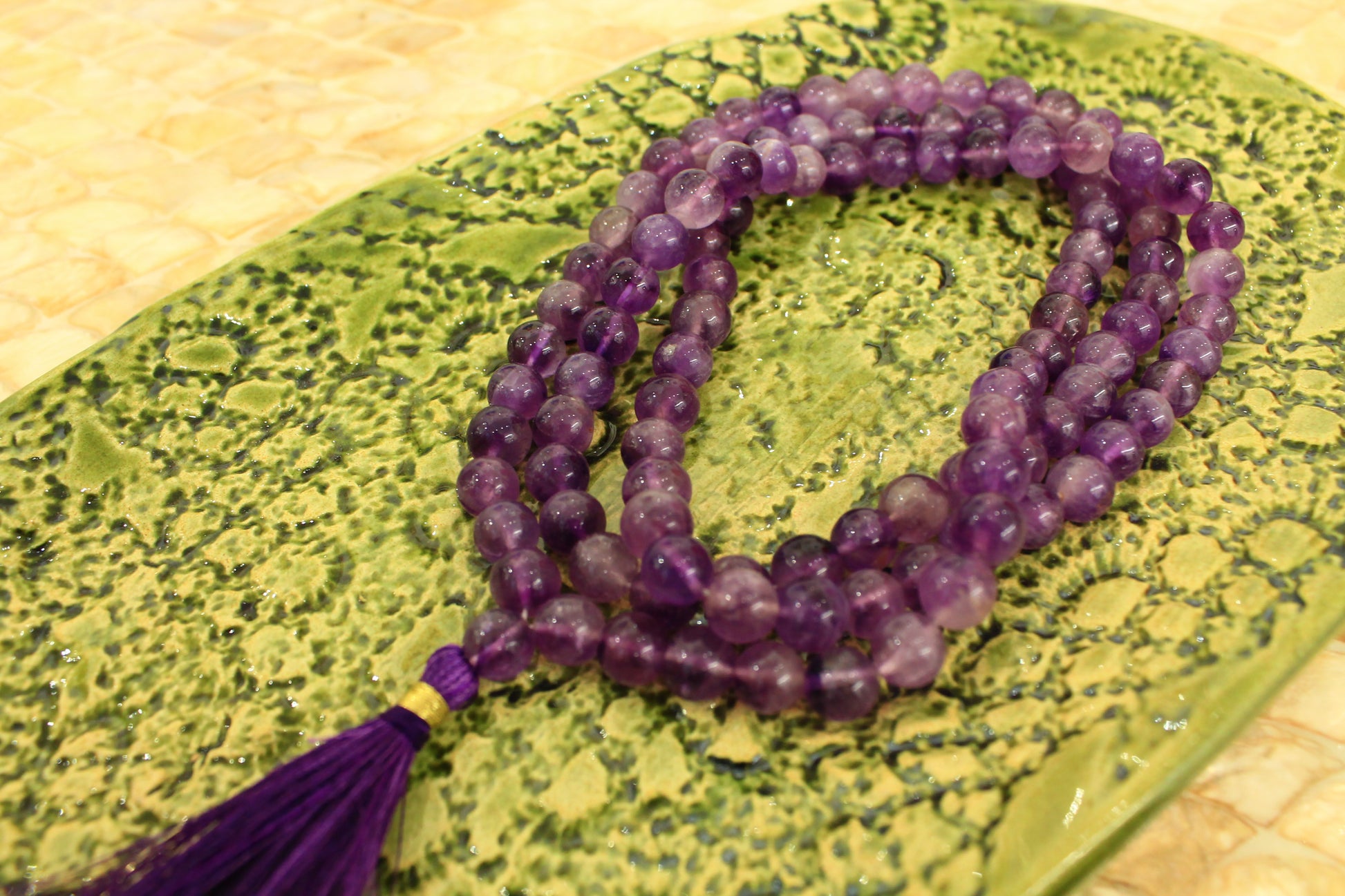 L'Ametista ha proprietà rilassanti, dona calma interiore. Legata alla spiritualità e ai sogni, 6° e 7° chackra. Questa pietra risveglia l'intuito, essendo una pietra lunare. Scioglie la paura ed è ideale per superare i momenti di tristezza.