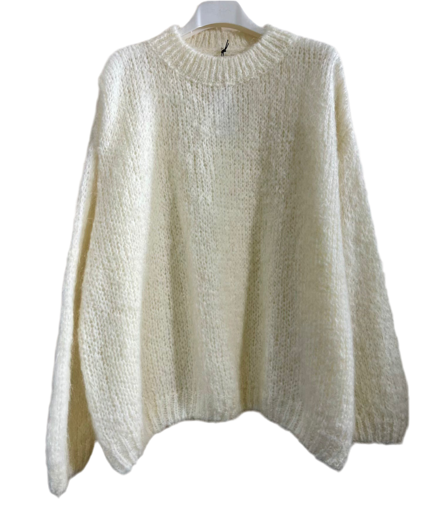 Il pullover "Whisper" combina mohair e lana in un tessuto misto che assicura calore e leggerezza. Il modello a paricollo offre comfort e un’estetica raffinata, adatta a qualsiasi occasione. Taglia unica, perfetta per chi cerca praticità senza rinunciare alla qualità e all’eleganza di un capo artigianale.