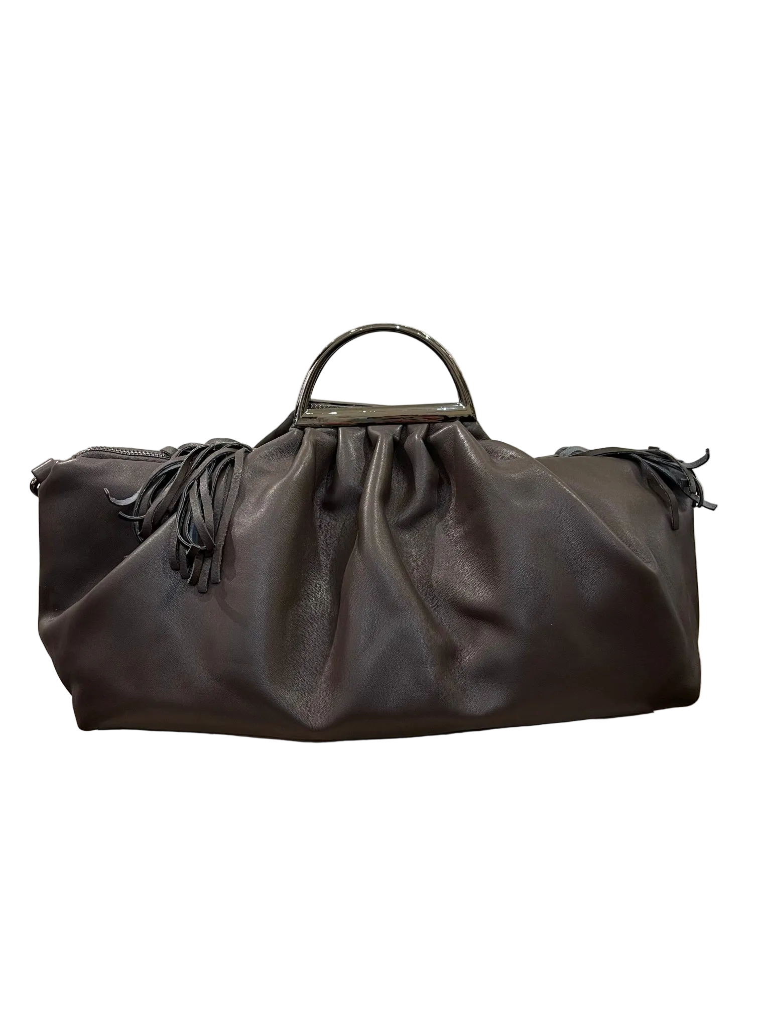 La borsa “Prestige” è realizzata in ecopelle morbida, offrendo un equilibrio tra estetica e funzionalità. La maniglia rigida in ferro garantisce una presa sicura, mentre le cerniere di chiusura con nappa a frange uniscono design elegante e praticità. Ideale per chi cerca un accessorio versatile e durevole.